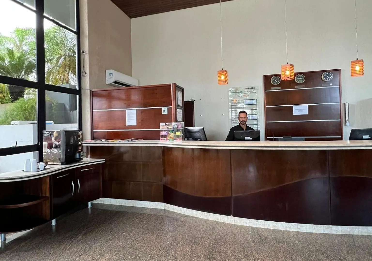 O hotel fica a poucos passos da estação de ônibus Avenida Max Schramm.