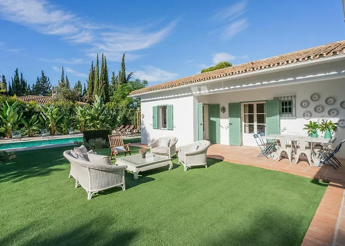 La villa Villa Las Chapas Playa, de 600 m², ofrece alojamiento en Marbella, a 6 km del Teatro Ciudad de Marbella y a 7 km del Ayuntamiento. Esta villa también cuenta con habitaciones con un sofá, servicio de tetera/cafetera y TV de pantalla plana con canales vía satélite, así como con una cocina.